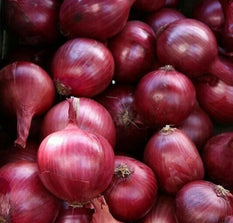 Red onions tend to be medium to large in size and have a sharp flavor and eye-watering qualities. They are often consumed raw (and can be added to salads for color and bite), grilled, or lightly cooked with other foods. Red onions are available throughout the year and are high in flavonoids and fiber (compared to white and yellow onions). Cut red onion can be soaked in cool water for a period of time, and the water can be drained off, resulting in less "bite" and pungency. Product of Washington.